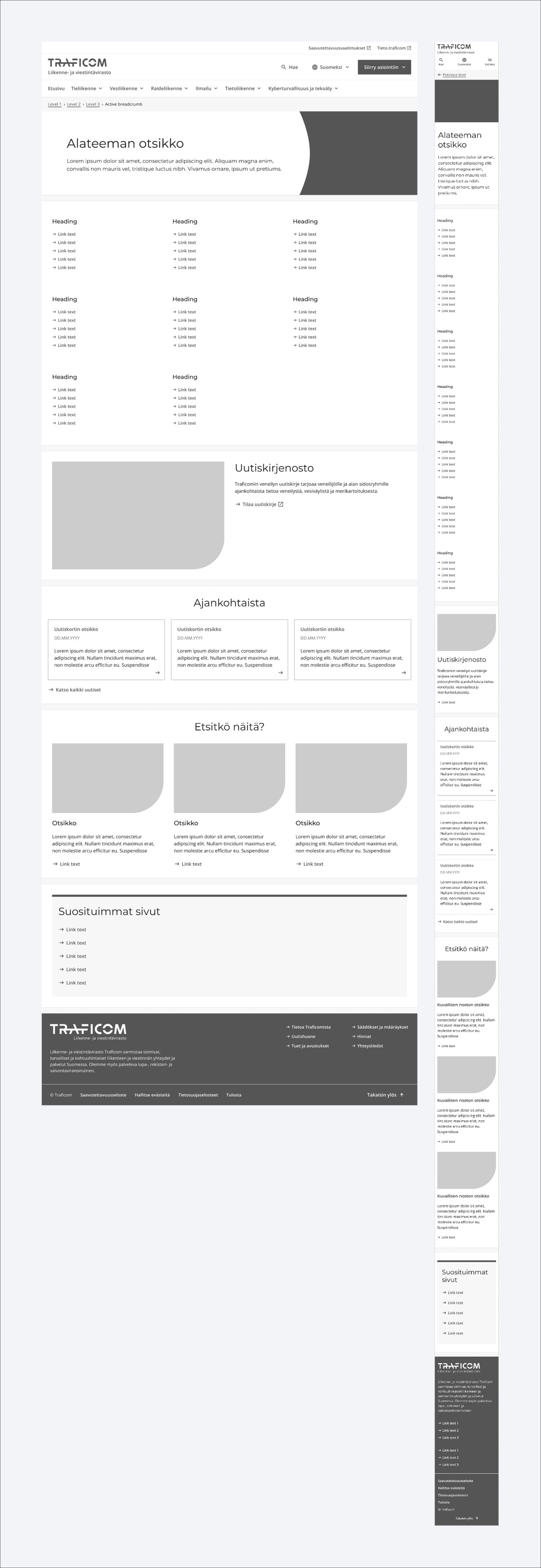 Alateeman laskeutumissivu toimii käyttäjän navigoinnin apuna. Sivulle listataan kaikki alateeman sisältämät sivut. Sivulla voidaan myös nostaa erityisen huomionarvoisia aiheita ja sivuja kuvallisilla nostoilla sekä uutislistauksella.