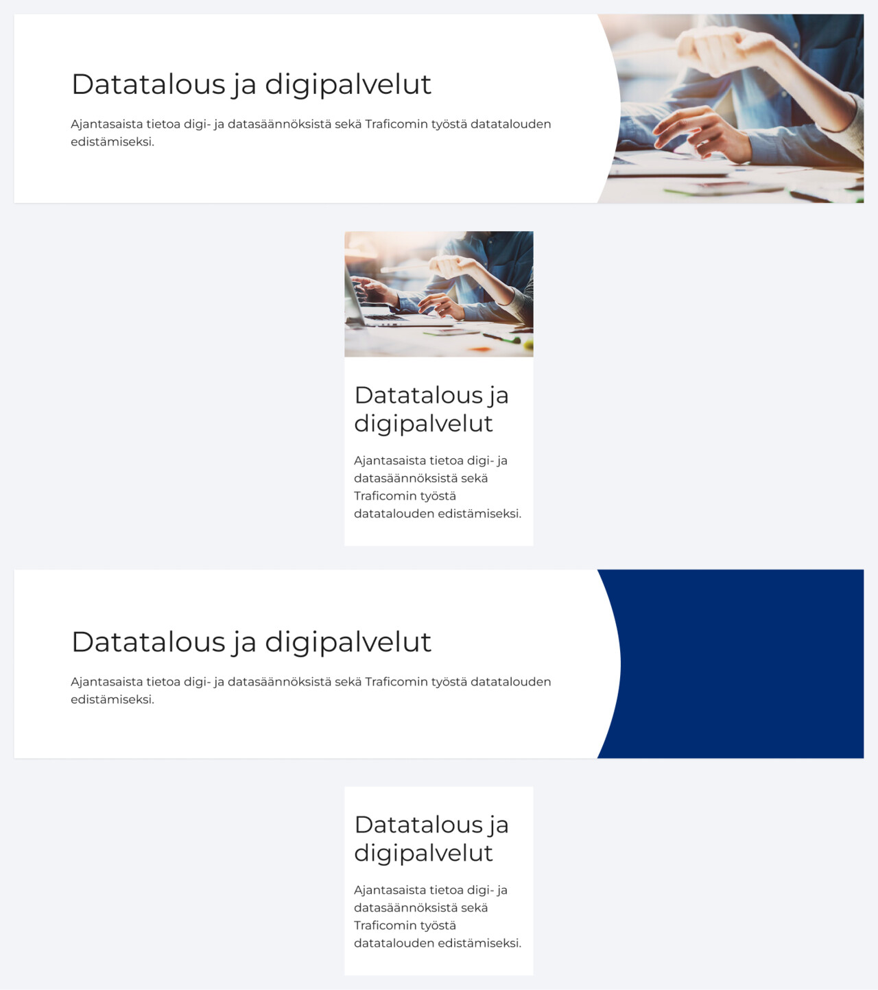 Sivun loppuun voi lisätä käyttäjälle tärkeitä nostoja. Käytä tähän kuvallinen nosto-elementtiä. Kun valitset linkitettäviä aiheita, käytä omaa harkintaasi. Mikä muu sivu tai aihe käyttäjää voisi kiinnostaa tässä kohtaa käyttäjäpolkua? Mikä lisätieto voisi olla hänelle tarpeellinen? Kuvallinen nosto herättää käyttäjän huomion, joten harkitse nostettavat linkit tarkkaan.