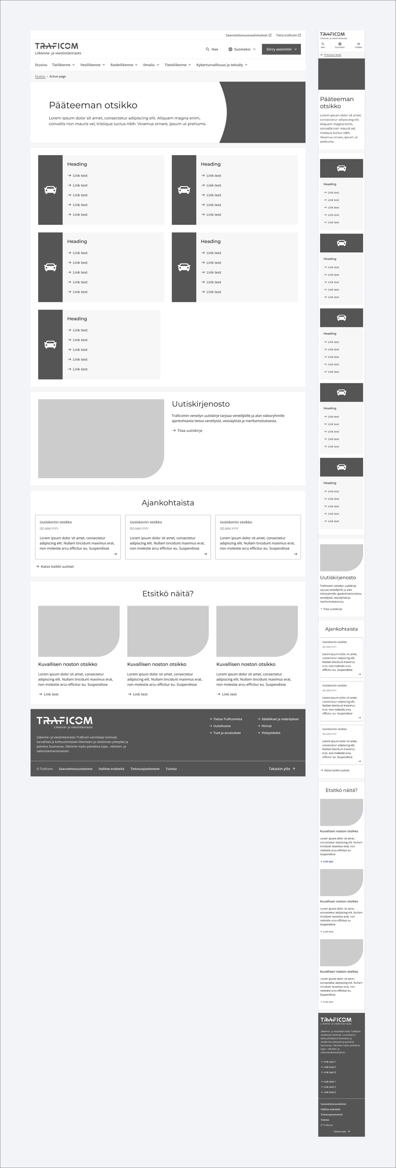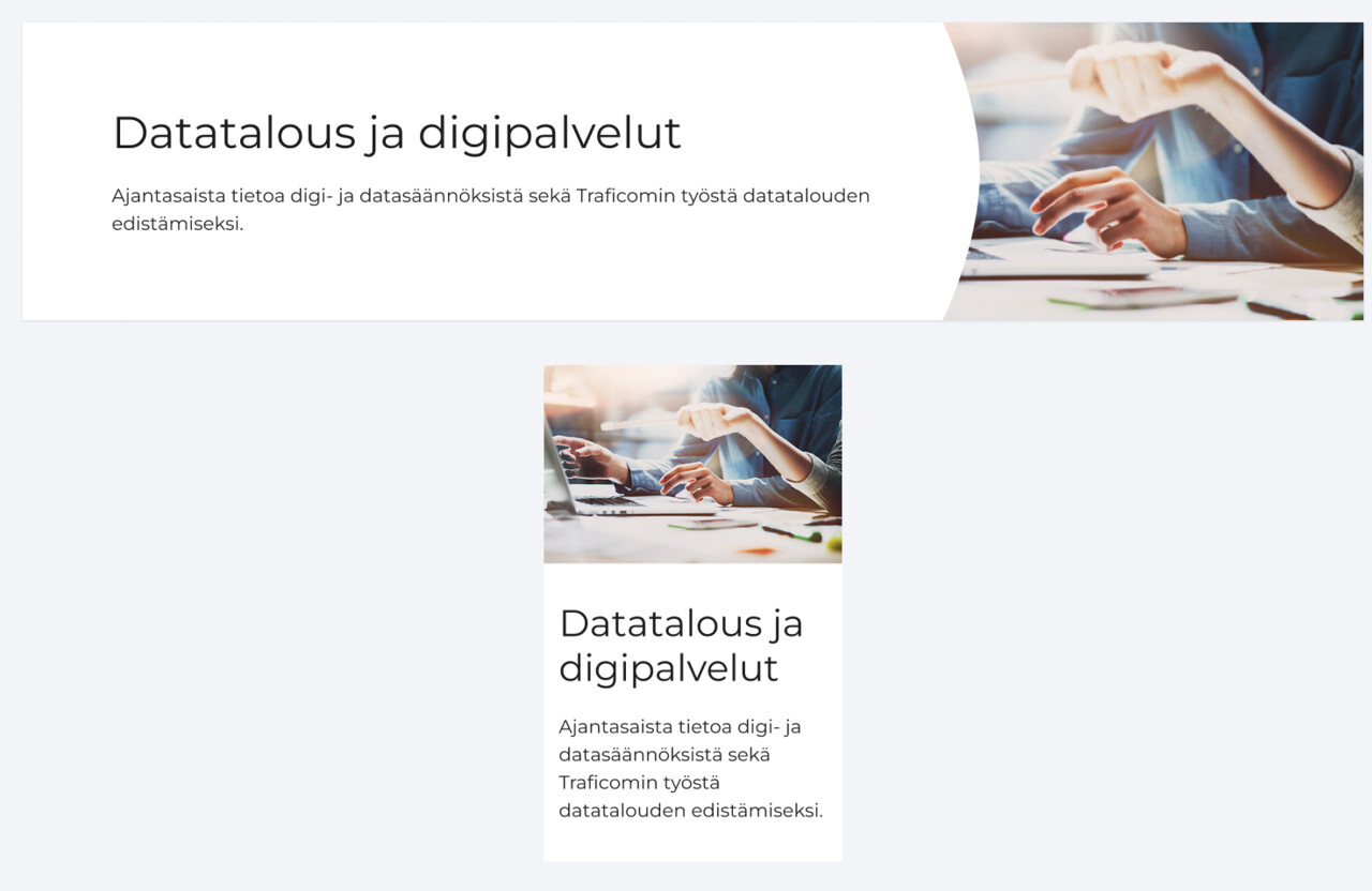 Pääteeman laskeutumissivu esittelee teemakokonaisuuden yhdellä sivulla. Pääteeman laskeutumissivun sisältömallia käytetään vain navigaation toisella tasolla, jos pääteema on pilkottavissa alateemoihin.