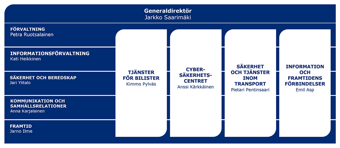 Traficoms organisation består av nio sektorer.